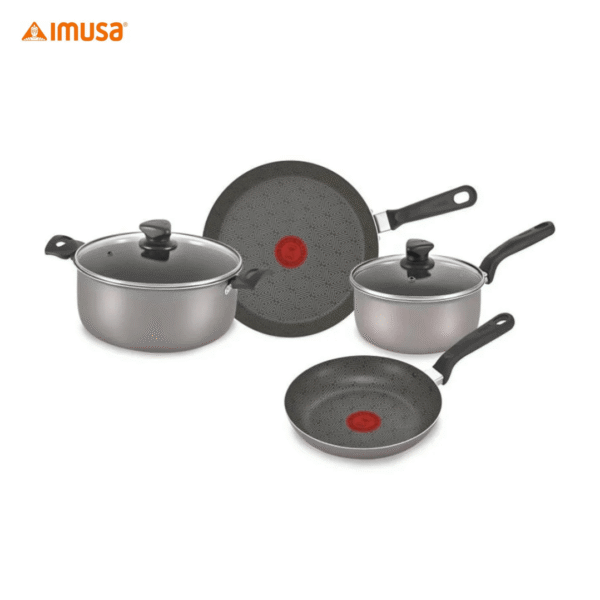 JUEGO DE CALDERO 14-22 TAPA PULIDA RH; set de 5 calderos elaborados en aluminio fundiddo con acabado pulido tipo espejo que mejora su durabilidad y facilita la limpieza. Incluye tamaños de 14, 16, 18, 20, 22, cm de diámetro, con tapas ajustadas que permiten una cocción uniforme y controlada. Sus asas laterales de baquelita ofrecen agarre firme y aislamiento térmico. De color plateado con detalles negros, marca RH, dimensiones del empaque 22 cm de alto, 28 cm de ancho y 24 cm de largo. Ideal para uso doméstico o profesional en cocina, apto para preparar desde sopas hasta guisos. Se recomienda lavar con esponja suave y jabón neutro, evitando productos abrasivos para conservar su brillo y vida útil.