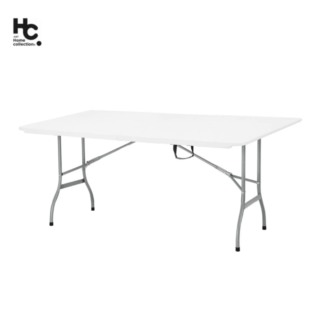 MESA PLEGABLE TIPO MALETA PORTATIL EN POLIETILENO DE 180 CM BLANCA JUST HOME COL Mesa Plegable Tipo maleta 180cm Blanca de color blanco. Se dobla fácilmente por la mitad, es portátil y posee asas. Se puede usar tanto en exterior como interior. Son ideales para matrimonios, banquetearía, ferias, seminarios, casa, camping, etc.