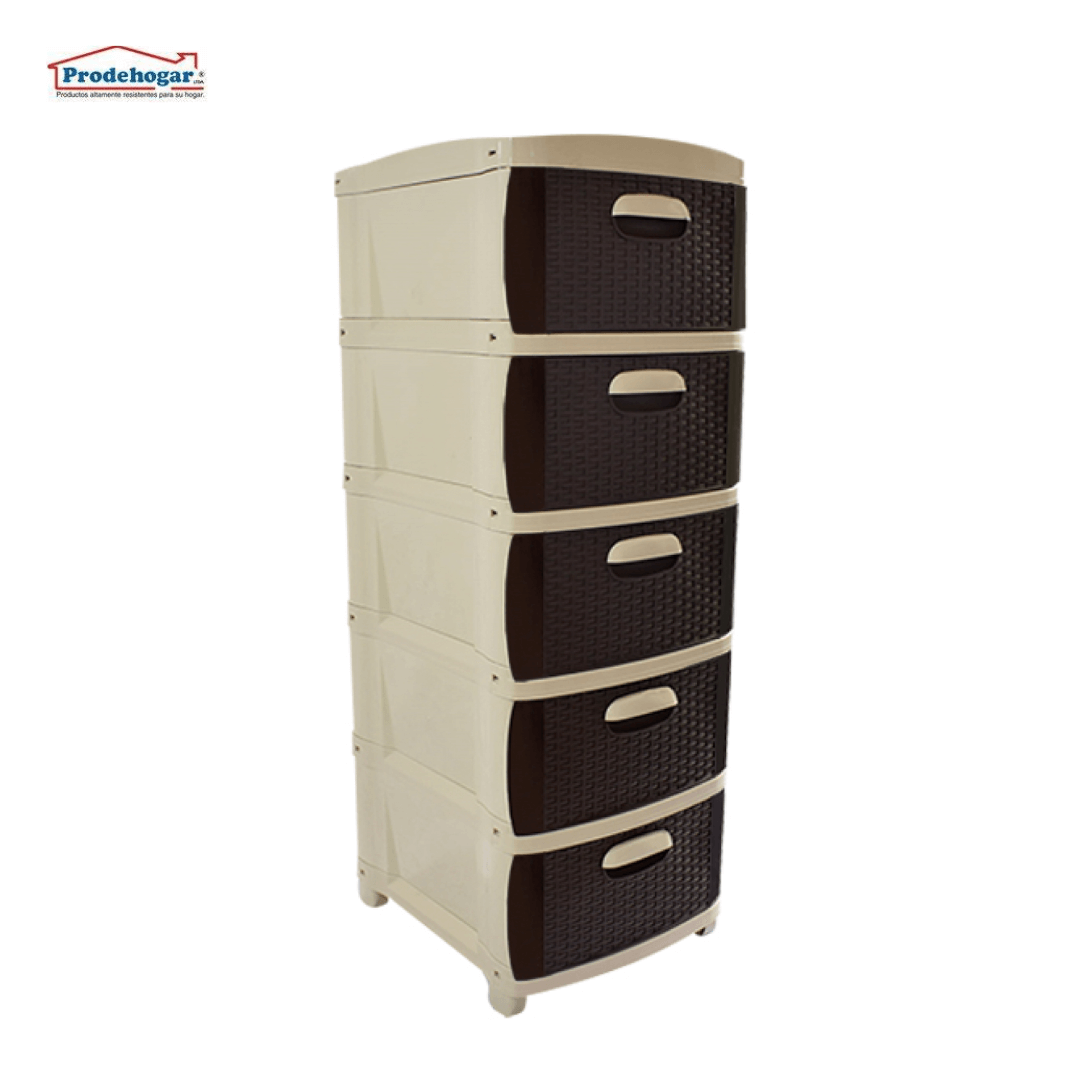 PRACTIMUEBLE DUBAI 5 NIVELES RATTAN BG-CF PRODEHOGAR REF 390ORR5N19; El mueble organizador prodehogar de 5 niveles; con dimenciones de 114 cm de alto, 40 de ancho, 50 de largo, fabricado en plastico en alta calidad en polipropileno para los que buscan decoración y ahorro de espacio al mismo tiempo. Es el preferido para los hogares donde se requiere optimizar el espacio, para ubicar en la cocina, habitaciones, oficina o espacios de hobbies, variedad y combinacion de colores en efecto rattan y liso, ideal para organizar y decorar cualquier espacio de tu hogar. Resistente y duradero, con un diseño moderno y elegante