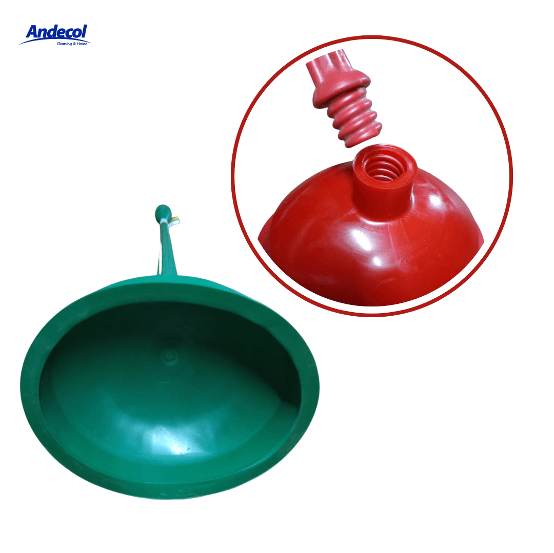 CHUPA SANITARIO COLOR ANDECOL REF; MPO107; diseñado para ofrecer una succión potente y eficiente en la limpieza y destape de sanitarios. Cuenta con dimensiones aproximadas de 48 cm de alto, 14 cm de ancho y 14 cm de largo, en un formato unicolor y de marca Andecol, ideal para uso doméstico y comercial. Fabricado en polipropileno en el mango y PVC en la chupa, garantiza resistencia, flexibilidad y larga durabilidad. Este producto no posee niveles ni compartimientos y, por su diseño portátil, es fácil de almacenar y manipular. Perfecto para utilizar en el baño, especialmente en sanitarios, permitiendo generar vacío y presión para desalojar obstrucciones. Para mejores resultados, se recomienda posicionar la chupa firmemente sobre la salida del sanitario, ejercer presión vertical y repetir el movimiento hasta liberar el flujo de agua, limpiando y secando después de cada uso para mantenerlo en óptimas condiciones.