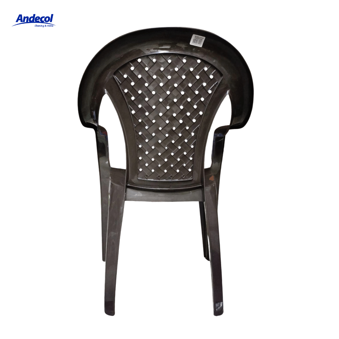 SILLA EPIKA ADULTO WENGUE PELETIZADA CON BRAZO; fabricada en plástico de alta calidad en polipropileno, con dimensiones de 80 cm de alto, 54 cm de ancho y 39 cm de largo. Presenta un diseño apoya brazo monoblock sin niveles ni compartimientos, con capacidad para una persona adulta y estructura tipo tejido maya que mejora la ventilación y comodidad. Su color WENGUE aporta un toque moderno y vibrante y sofisticado, ideal para uso en interiores o exteriores como terrazas, patios, jardines, balcones o áreas sociales. Es ligera, resistente a la intemperie y fácil de limpiar; se recomienda lavar con agua y jabón suave, evitar sobrecargarla y conservarla en superficies firmes para mayor estabilidad y durabilidad.