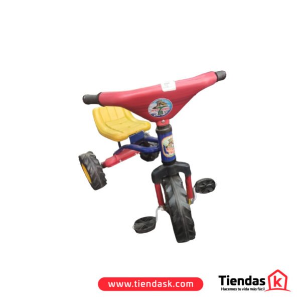 Triciclo metálico Yoggy para niños con baul trasero y canasta. Ideal para paseos divertidos y seguros. Resistente y duradero, brinda estabilidad y comodidad. Perfecto para transportar juguetes y objetos pequeños. Diseño atractivo y colores llamativos. ¡Aventuras sobre ruedas garantizadas!