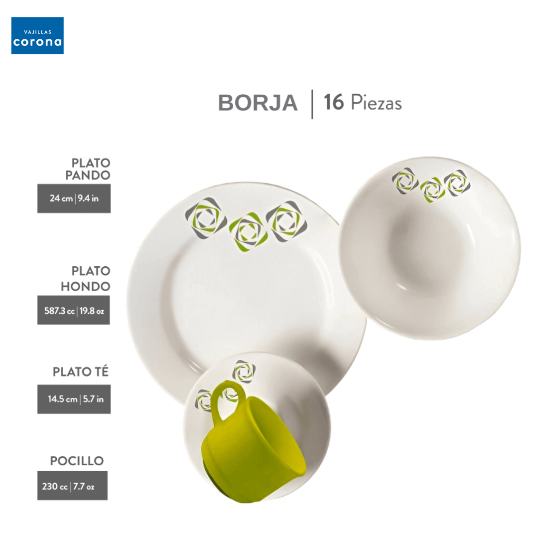 VAJILLA CORONA BORJA 4 PTOS 16 PCS REF VL12900403